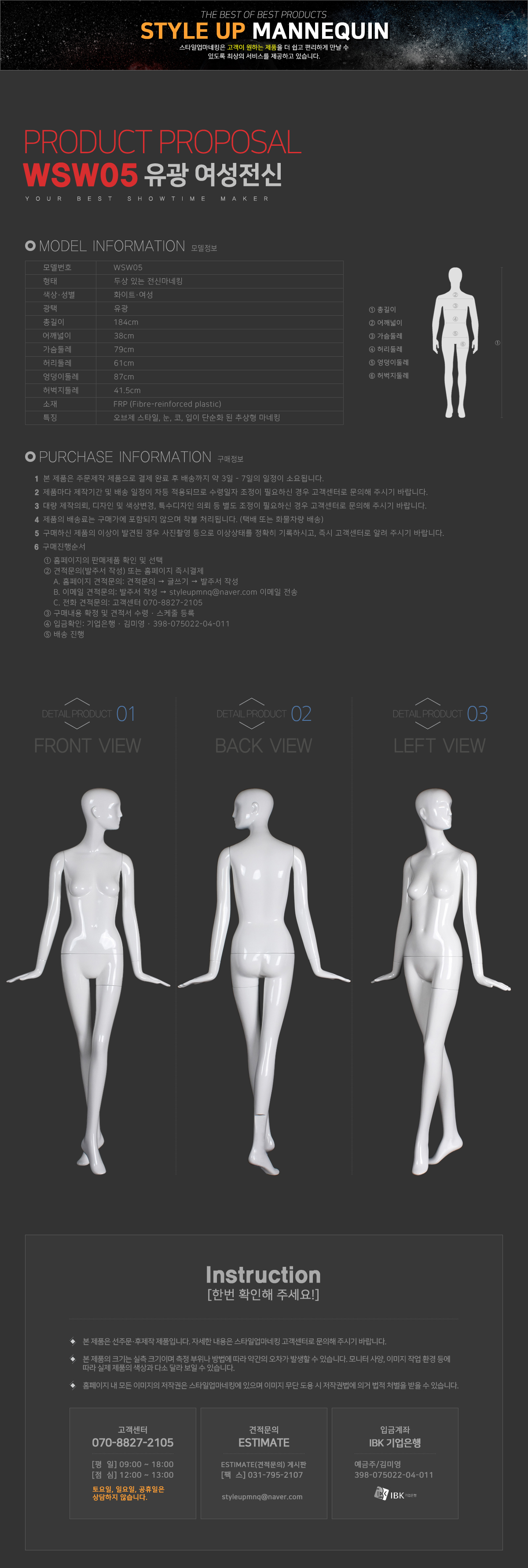 WSW05/여성/전신마네킹/판매/렌탈/대여/임대/행사/전시