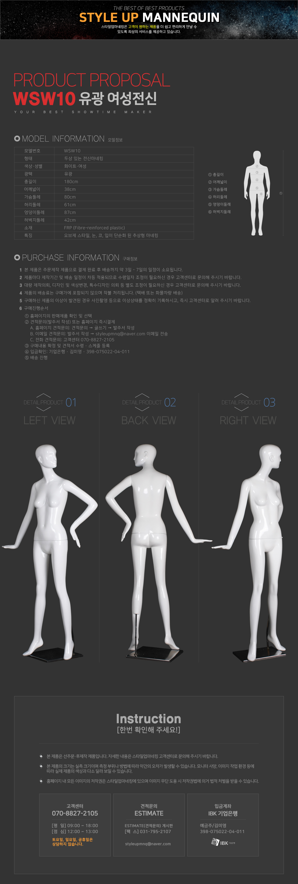 WSW10/여성/전신마네킹/판매/렌탈/대여/임대/행사/전시
